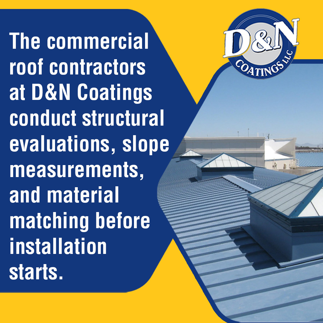 Commercial roof performance begins with planning. The commercial roof contractors in Springfield at D&N Coatings conduct structural evaluations, slope measurements, and material matching before installation even starts. Ignoring these can result in wind uplift, ponding water, and membrane damage.