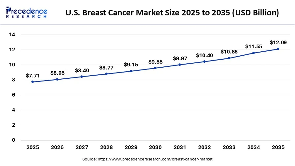 According to Precedence Research, the U.S. breast cancer market size is valued at USD 8.05 billion in 2026 and is projected to surge to USD 12.09 billion by 2035, growing at a CAGR of 4.60% from 2026 to 2035.